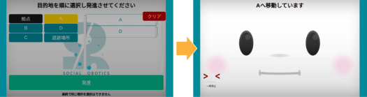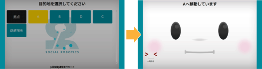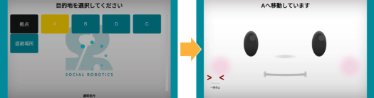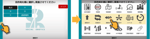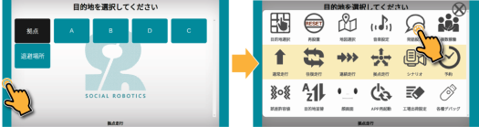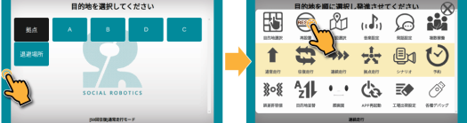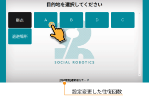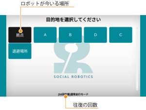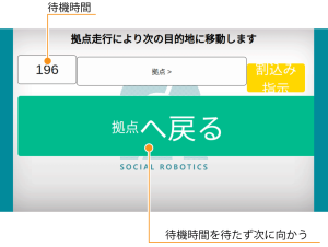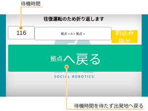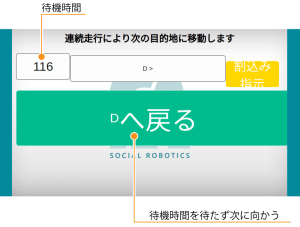 | たくさん届いた荷物を乗せたら最初の目的地を指定、到着した目的地で次の目的地を指定…を繰り返す 目的地での待機時間が長くなりそう(5分以上)な時 | 通常走行 |