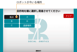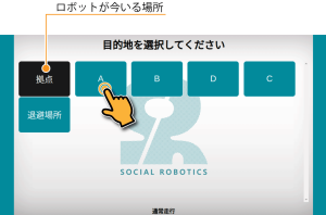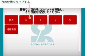 現在ロボットがいる場所は、画面上に黒いボタンで表示されています。