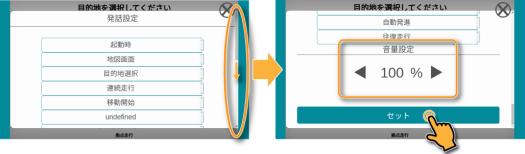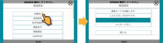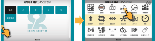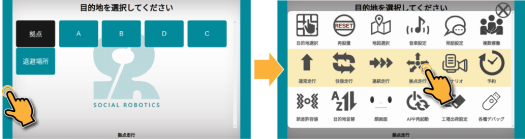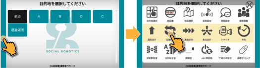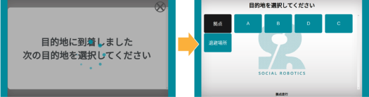 目的地に到着すると目的地の選択画面に切り替わり、次の目的地選択を待ちます。