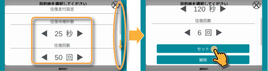 往復走行では「往復待機秒数」と「往復回数」が指定できます。