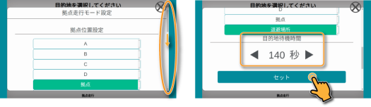 指定した待機時間が経つと自動で次の目的地へ出発します。