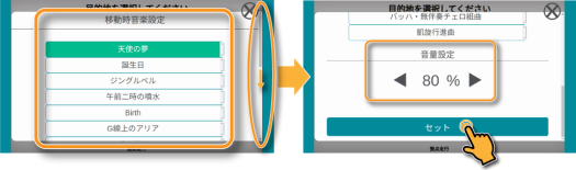 指定が終わったらスクロールバーを下方向にドラッグして画面をスクロールし、「セット」ボタンをタップします。