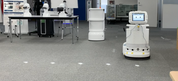 RFIDマーカーは床に50cm間隔で設置し、BUDDYの走行ルートをつくります。格子状に埋める必要はなく、走行に必要な分だけ貼れば十分です。まずは養生テープなどで仮貼りをしてください。BUDDYを実際に走らせてみると、細かい調整が必要になることがあります。