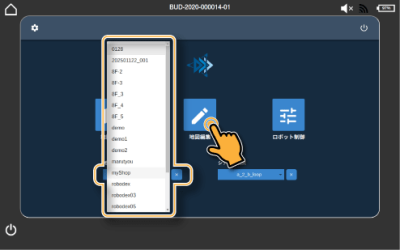 地図作成アプリの画面で「地図選択」ポップアップから、編集したい地図を選択します。