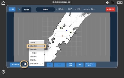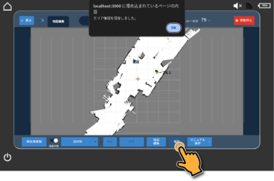 これは部屋の外形や椅子やテーブル、設備などの基本的には動かない障害物をロボットに覚えさせる作業です。