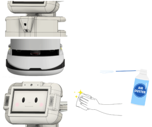胸元、胸下、足(左右)、正面のセンサ、3Dカメラは安全なロボットの運用を保つために重要なセンサです。